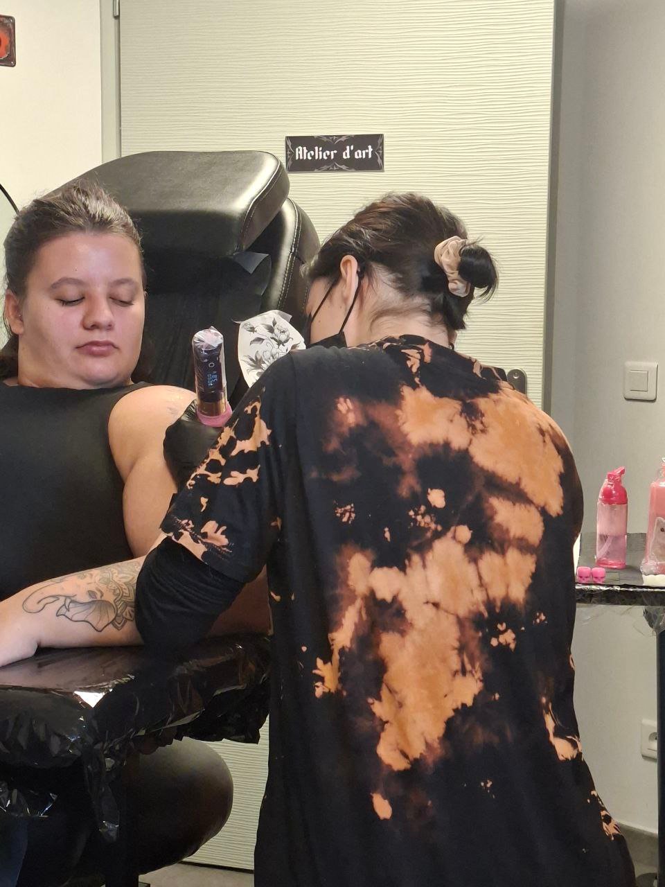 Elle travaille dans plusieurs styles, mais se spécialise dans le graphique, le dark tattoo, le japonais et le surréalisme. Chaque projet est conçu comme une œuvre d’art, où la technique rencontre l’émotion, pour créer un tatouage qui raconte une histoire — la vôtre.